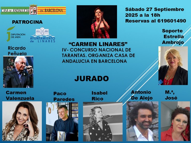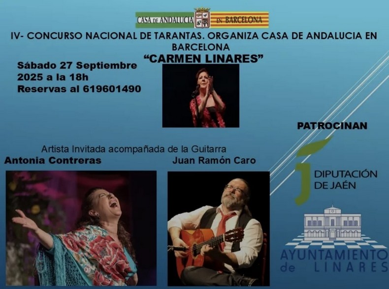La Casa de Andalucía en Barcelona tiene todo preparado para la final de la cuarta edición del Concurso Nacional de Tarantas "Carmen Linares", que tendrá lugar el 27 de septiembre, a partir de las 18 horas, en el Auditori L'Illa de Barcelona, anteriormente conocido como Auditori AXA. En la edición de este año, se rendirá homenaje a la bailaora japonesa Layunko y al comunicador Antonio Menchón, quien también presentará el acto.